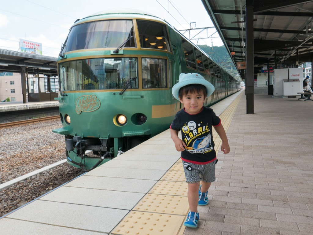 飛び込みだったけど、特急「ゆふいんの森」のチケットが取れたので別府駅までプチ旅行。ちょっとお値段高めだったけど、こぶはいい思い出になったみたい。