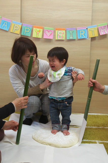 今日は先週できなかったこぶの誕生祝いで踏み餅をしたんだけど、一週間経った餅はカチンコチンでその上ヒンヤリしてた所為か、こぶギャん泣きだった。