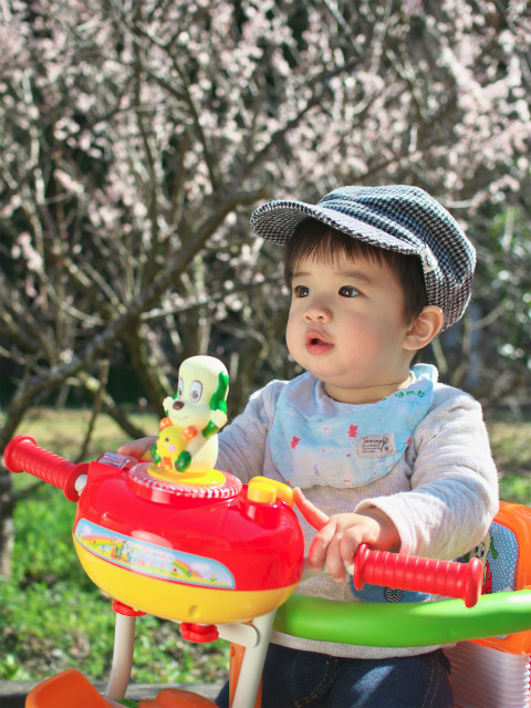 今日はこぶの3輪車デビュー。誕生日に買っていたんだけど、こぶ&kehyの体調不良やら雨やらで、のびのびになっていたのでついに!といった感じ。